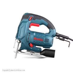 مجهز به گیربکس صنعتی و موتور پر قدرت مجهز به سیستم پیشرفته تعویض تیغ اره بصورت آچاری با مکانیزم دو پیچ مجهز به سیستم تنظیم دمنده باد جهت پاکسازی مسیر برش حین کار قابلیت تنظیم سرعت پیشروی قابلیت برش زاویه دار دقیق با استفاده از صفحه متحرک برش ارهها که ابزاری برای برش اجسام مختلفاند، گونههای بسیار متنوعی دارند. این ابزار در دو نوع شارژی یا برقی در اشکال بسیار گوناگونی ساخته میشود. ارههای عمودبر یا ارههای چکشی، گونهای از ارههای برقی و شارژی است که از آن برای برش قطعات مختلف چوبی، پلاستیکی یا فلزی در صنایع و مشاغل مختلف استفاده میشود. تیغهی مخصوص این دستگاه بهصورت چکشی یا رفتوبرگشت عمودی حرکت میکند تا عمل برش انجام شود.اره عمود بر 4120 رونیکس 2.75 کیلوگرم وزن دارد و به شکل ارگونومیک تولید میشود. موتور این محصول با توان 650 وات، تیغه را با سرعت 3100 باردردقیقه به حرکت درمیآورد و با دیمر قرار گرفته شده بر روی کلید پاور این عمودبر میتوان سرعت آن را کنترل نمود.به کمک این دستگاه و اتصال تیغهی مناسب به آن، میتوانید قطعات چوبی را تا قطر 60 میلیمتر و قطعات فلزی را تا قطر 10 میلیمتر برش دهید. امکان برش زاویه برای این محصول در نظر گرفته شده است.اره عمود بُر قابلیت بریدن سطوح چوبی، پلاستیکی و صفحات فلزی را دارد.به وسیله اره عمود بُر می توان الگوهای نسبتاً پیچیده برش را روی سطوح مورد نظر پیاده نموده و برش زد.اره عمود بُر قابلیت اتصال سه نوع تیغه را دارد. نوع اول و دوم دارای دندانه های درشت می باشد و مخصوص برش زدن سطوح چوبی وMDF می باشد. نوع دوم دارای دندانه های ریز بوده و برای برش زدن سطوح سخت تر مانند پلکسی گلاس و صفحات فلزی به کار می رود.برای برش زدن یک سطح توسط اره عمود بُر لازم است ابتدا نقشه و الگوی برش بر روی سطح مورد نظر رسم شود. برای رسم الگوی برش می توان روی سطح مورد نظر را با چسب کاغذی پوشانده و نقشه را روی آن رسم نمود.پس از رسم نقشه محل برش باید سطح را روی میز کار محکم نموده به نحوی که زیر محل برش باز باشد.پس از انتخاب تیغه مناسب، سرعت اره را با توجه به جنس تنظیم نمایید. هر چه جنس مورد نظر سخت تر باشد، باید سرعت اره کمتر انتخاب شود. برای بریدن قطعه ای در وسط صفحه لازم است در صفحه با استنفاده از دریل سوراخی ایجاد نمایید و برش را از سوراخ ایجاد شده شروع نمایید.