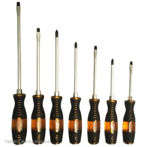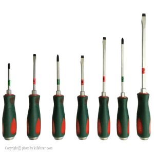 پیچگوشتی ابزاری جهت باز و بسته نمودن پیچ است. که یکی از قدیمی ترین ابزارهای بشر محسوب میشود. پیچگوشتیها انواع مختلفی همچون ساده . ضربهخور دارن که هر یک دارای کارایی مناسب خود میباند. پیچ گوشتی ضربه خور فریس یکی از این پیچگوشتیها است که از کیفیت ساخت بالایی بهره میبرند. به دلیل چرخش زیاد پیچگوشتی در حین کارکردن خصوصا کارکردن طولانی مدت، قسمت بالا دسته دارای یک نوار لاستیکی است تا دست خسته و یا اذیت نشود و دسته حالت ارگونومیک خود را حفظ نماید و به راحتی در دست قرار گیرد. در قسمت بالای دسته این پیچ گوشتی ضربه خور قابلیت کوبش پذیری نیز دارد. این ست دارای 4 عدد پیچگوشتی دوسو در سایزهای 75*5 و 125*6 و 150*8 و 43 عدد پیچگوشتی چهارسو در سایزهای 75*5 و 100*6 و 125*6 و150*8 است که در یک کاور برزنتی مقاوم در کنار یکدیگر قرار گرفته اند.
