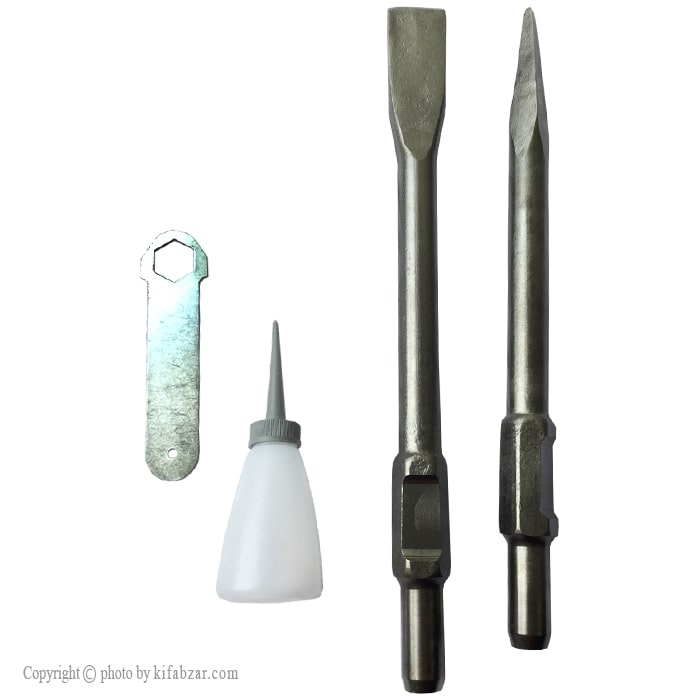 به همراه کیف فلزی ، دسته جانبی ، قلم نوک تخت و نوک تیز ، ذغال اضافه ، ظرف روغن ، آچار