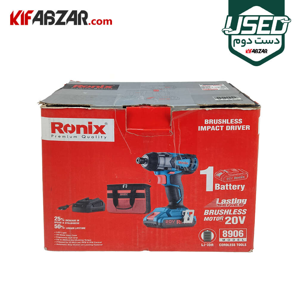 پیچ گوشتی شارژی براشلس 20 ولت رونیکس مدل 8906 دسته دوم